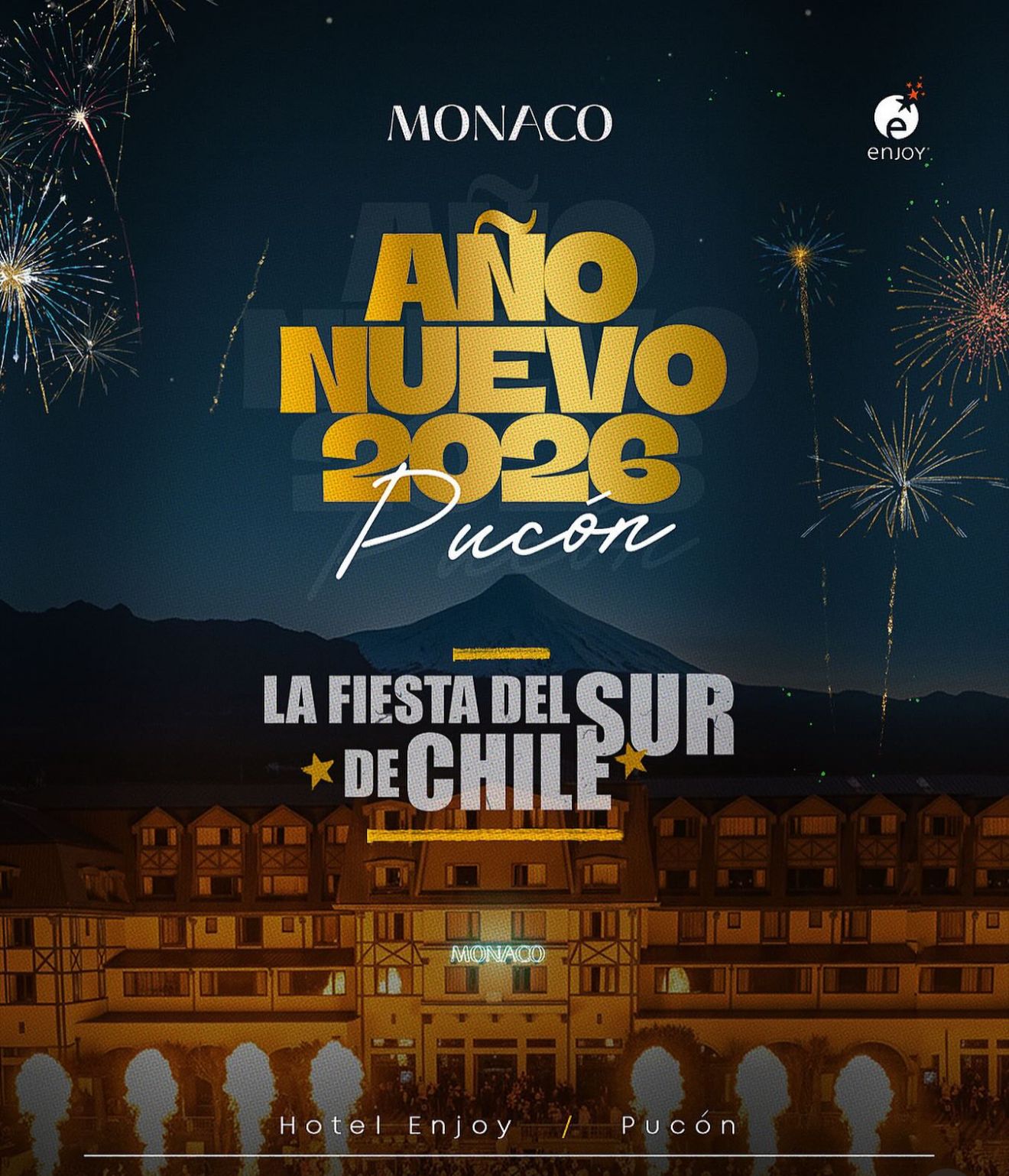 El Segundo Premio consiste en 4 entradas VIP para celebrar el Año Nuevo 2026 en Pucón, en uno de los eventos más exclusivos y espectaculares del sur de Chile, producido por Mónaco Producciones. Una experiencia única para recibir el nuevo año en grande, rodeado de un ambiente premium, música en vivo, show de luces, artistas invitados y la fiesta más elegante de la zona.